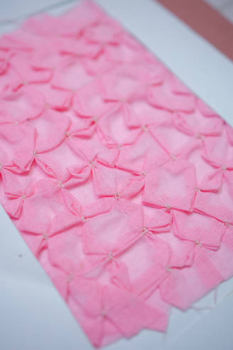 This project explores the expressive potential of embroidery as a medium for surface storytelling. Drawing inspiration from the bougainvillea flower, the work investigates how color, texture, and stitch can capture the vibrancy and delicacy of natural forms. A diverse range of hand techniques, including smocking, honeycomb quilting, appliqué, gathering, and traditional hand embroidery, were combined to create layered, tactile surfaces.